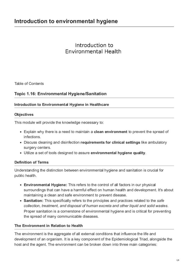 Introduction to environmental hygiene
