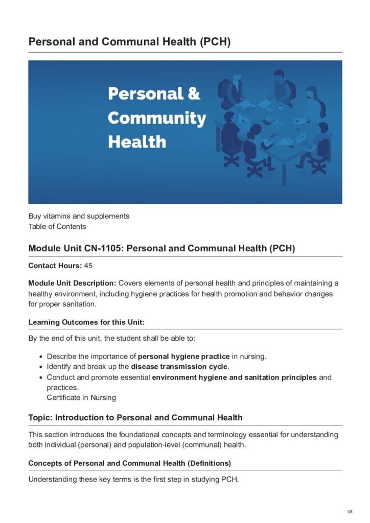 Personal and Communal Health PCH