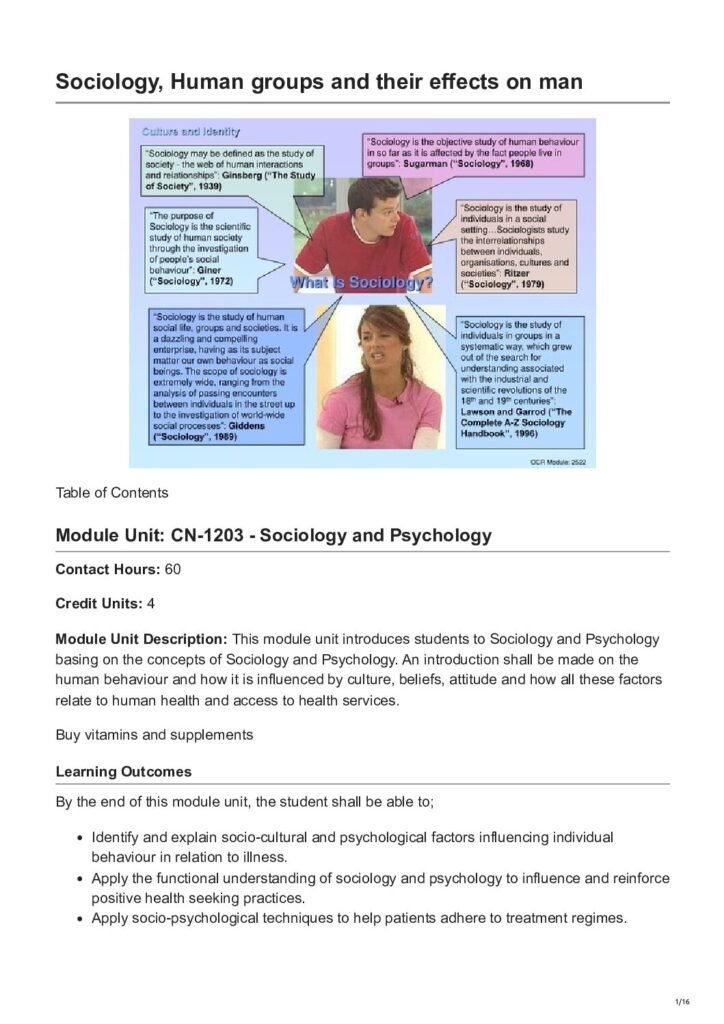 Sociology Human groups and their effects on man